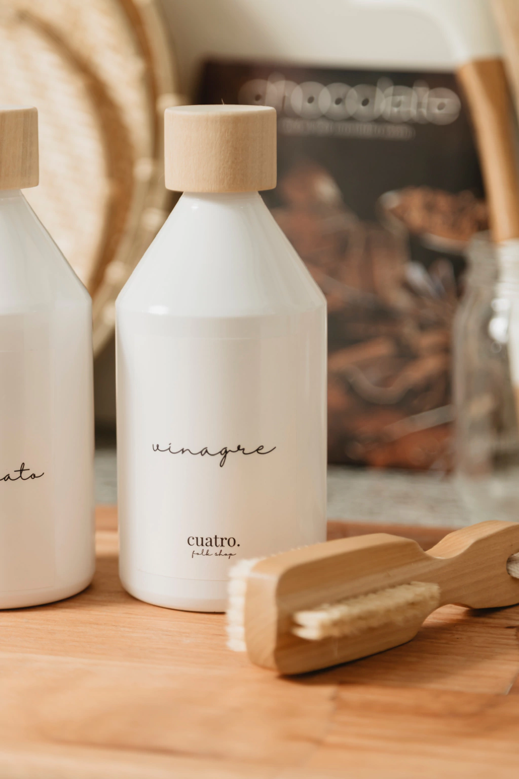 Dispenser de plastico blanco con tapa plástica & tapa de madera.