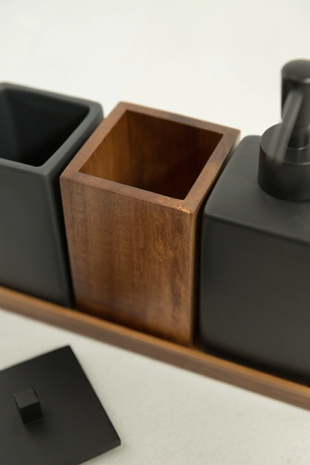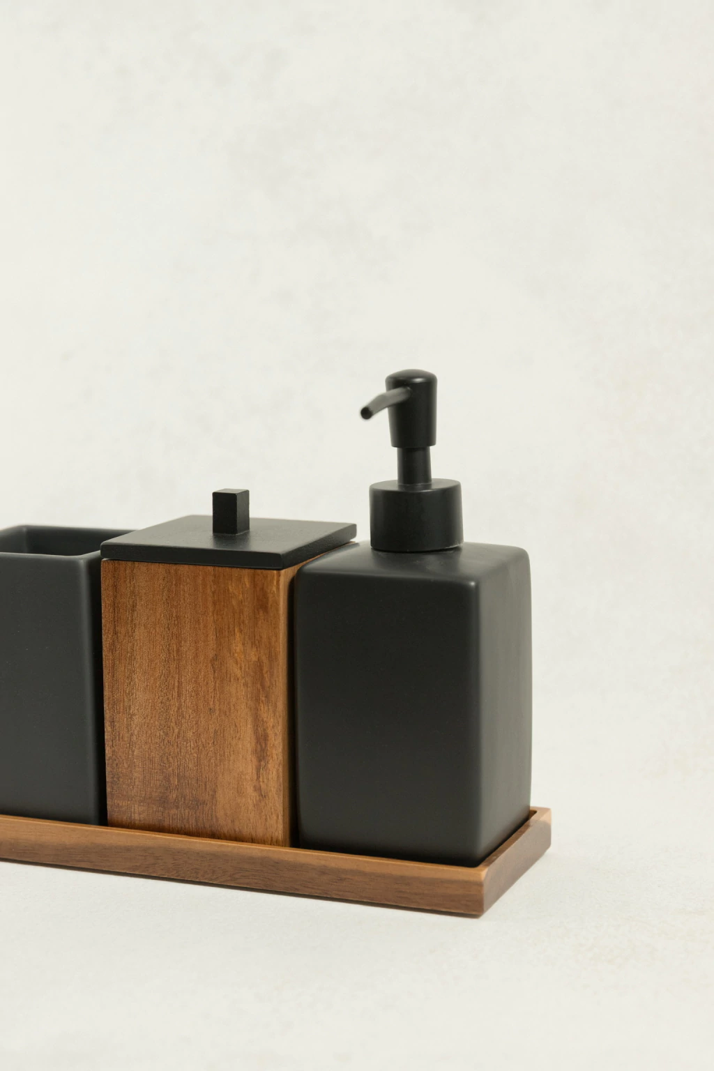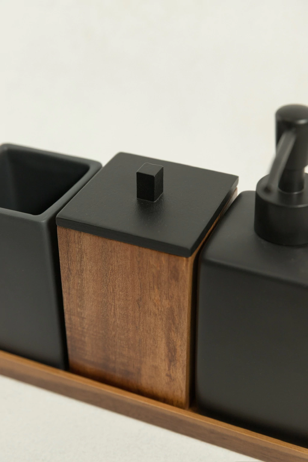 Un conjunto moderno y elegante que combina la sobriedad del negro mate con la calidez del bambú.