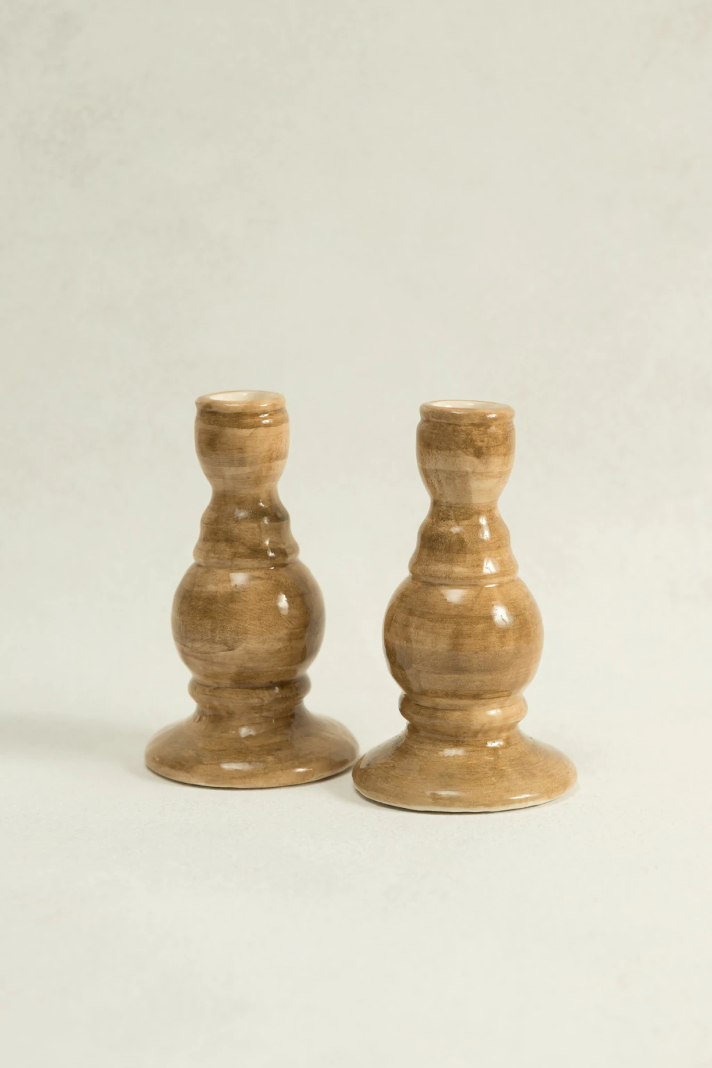 Candelabro alto de cerámica con acabado esmaltado.